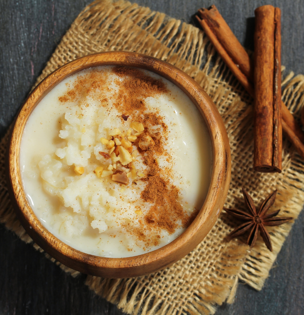 O Arroz Doce é uma sobremesa clássica que combina arroz branco, leite integral, açúcar refinado, creme de leite e leite condensado. O sabor é acentuado pela adição de limão siciliano e canela em pó, proporcionando um toque de frescor e aroma