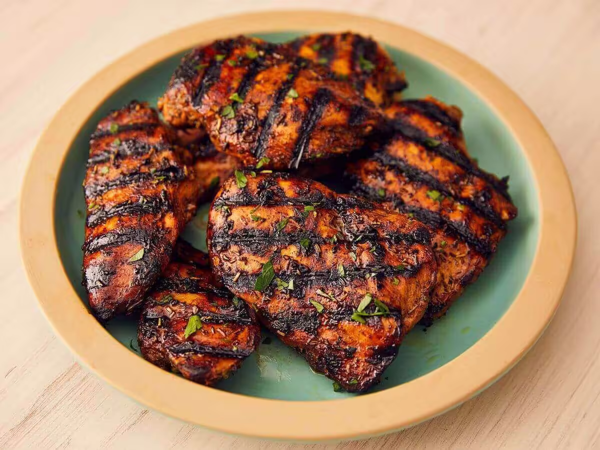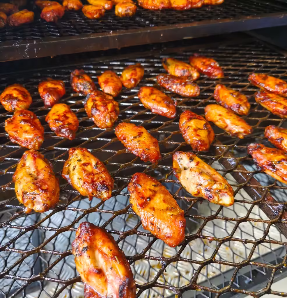 | Como é servido? | Asas de frango marinadas em molho de pimenta vermelha e manteiga, assadas até ficarem levemente crocantes. Finalizadas com toque de limão e alecrim. |