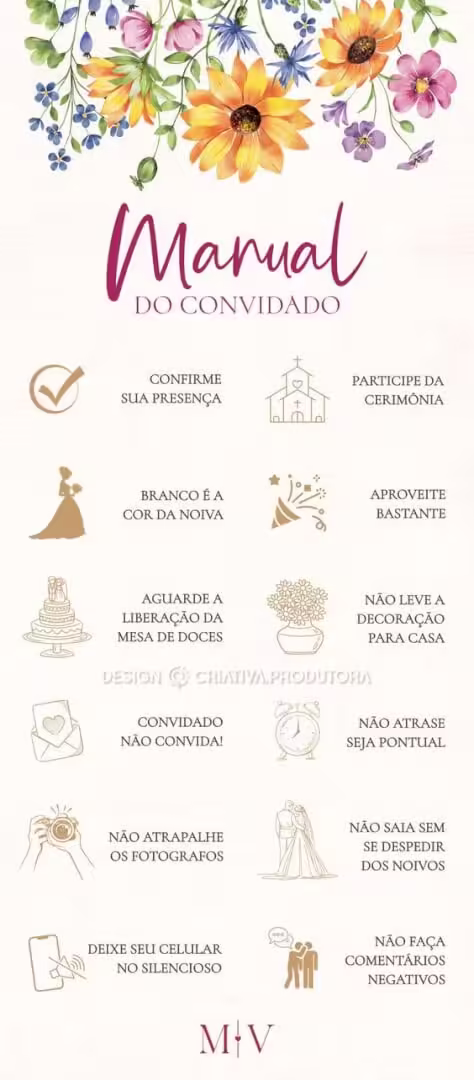 - Não convide alguém por que seu pai, sua mãe, seu tio ou tia ou um amigo x pediu para você convidar, é o dia do seu casamento, você deve dar prioridade para as pessoas que você ama, acredite, você irá lembra deste dia pro resto da sua vida, já pensou chamar aquele tiozão chato que fica bêbado e dá trabalho ou aquele primo mala sem alça e sem rodinha?