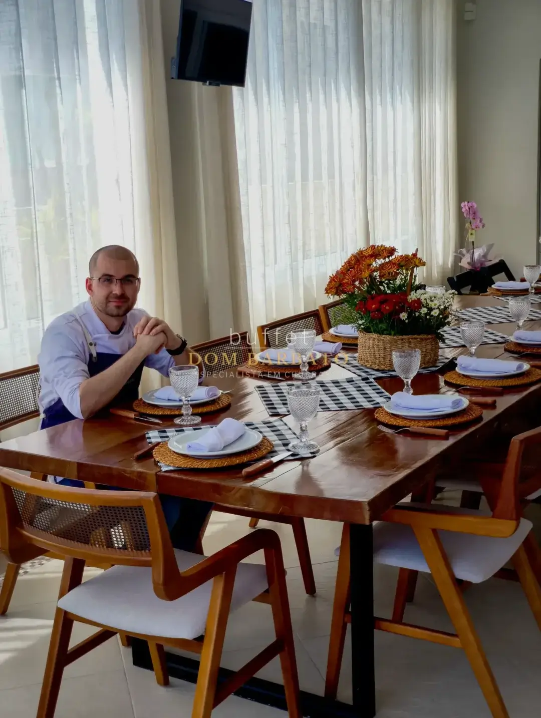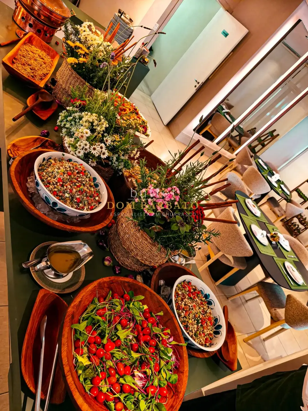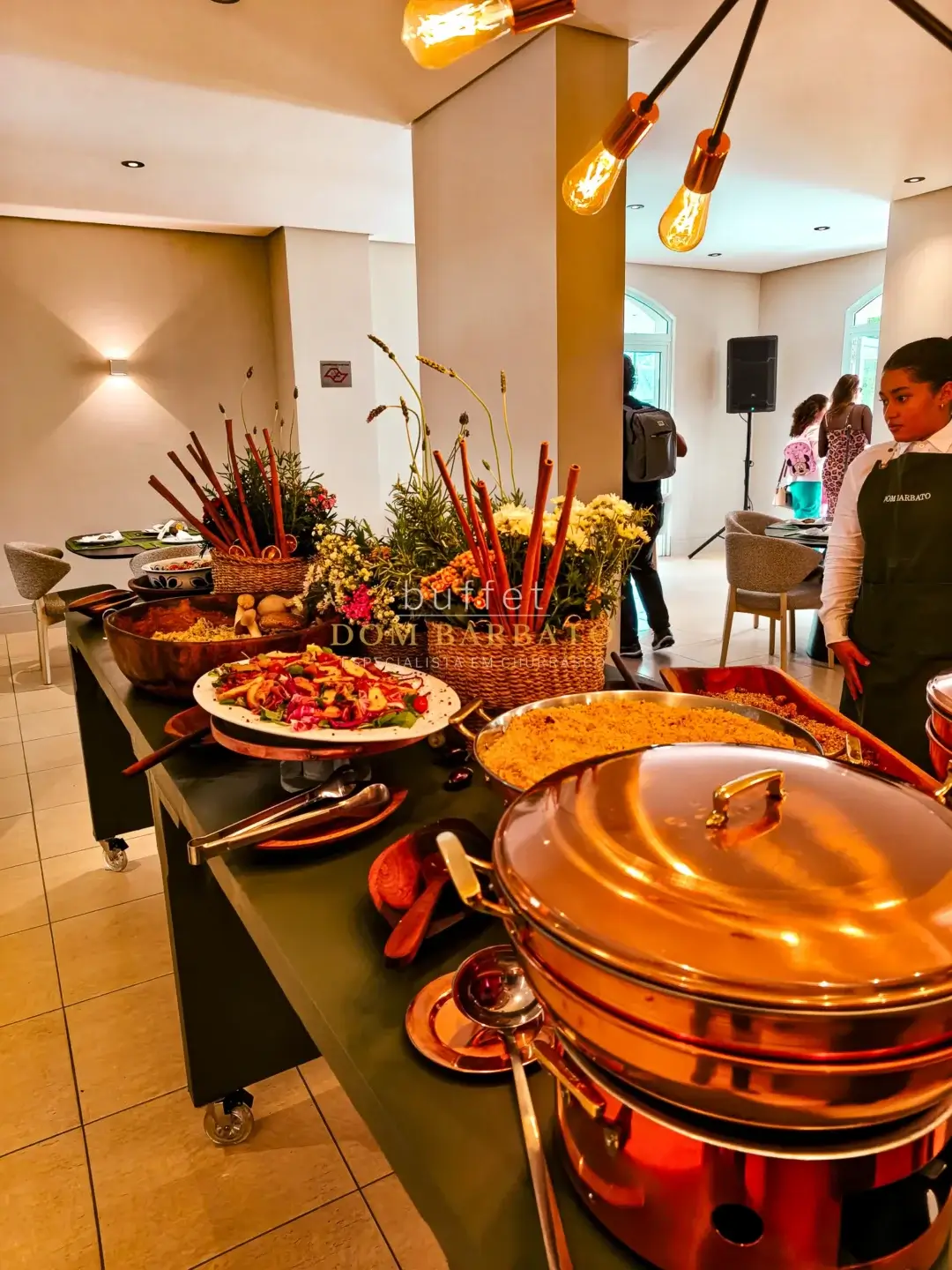 O menu inclui entradas, pratos principais e sobremesa, com preparos artesanais. Os acompanhamentos são estruturados em: pastéis, torresmo, farofas, saladas e pudim de laranja Bahia. Itens opcionais, como bebidas, também podem ser adicionados conforme necessidade do evento. O serviço é pensado para atender desde pequenos encontros até eventos maiores. O serviço pode ser contrato direto pelo Whatsapp 11985896125 ou wb@dombarbato.com